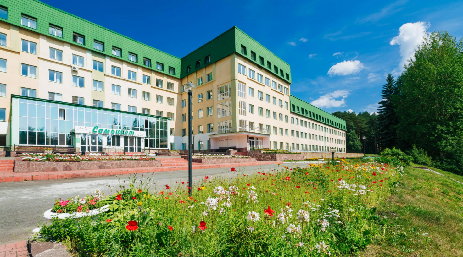 «Самоцвет» в Свердловской области является курортом федерального значения и расположен в экологически чистой местности в 130 км от г. Екатеринбурга, в 2 км от железнодорожной станции «Самоцвет» и в 15 км от озера Молтаево – источника уникальных лечебных грязей. Озеро является одним из самых древних на Урале, поэтому его грязи обладают редким составом и уникальными свойствами. Территория санатория является парковой и находится в сосновом лесу на берегу реки Реж. Фонтан, многочисленные цветочные клумбы, изобилие деревьев и кустарников, терренкуры, близость реки и свежий воздух создают особую атмосферу отдыха. Здравница состоит из 3 жилых корпусов, соединенных между собой теплыми переходами, 2 столовыми и 6-этажным корпусом медицинского центра, расположенного между 1 и 2 корпусами. Эти два корпуса 4-этажные и оснащены лифтом. Корпус №3 – 5-этажный без лифта. Все корпуса получили полную реконструкцию. Для размещения предназначено порядка 200 одно-, двух- и трехместных номеров с удобствами, холодильником, телевизором и необходимой мебелью. Питание гостей в санатории «Самоцвет» организовано в двух столовых, расположенных в разных концах санатория. Также работает бар в ротонде – отдельно стоящем 2-этажном круглом здании, в котором размещен культурно-досуговый центр. Это кинозал, караоке (в баре), игровая комната (бильярд, настольные игры), конференц-зал. Недалеко от корпуса №3 действует русская баня, а в медицинском центре есть просторная сауна. Там же, в медцентре, открыт тренажерный зал и оборудована детская игровая комната, что очень удобно для родителей при посещении процедур. На улице юных гостей ждет игровая площадка и качели. Ежедневно организуется развлекательная программа для детей и взрослых. Различные тематические мастер-классы, викторины, турниры, дискотеки, вечерние шоу, кино- и мультпоказы, экскурсии не дадут заскучать. Для многопрофильного лечения и реабилитации разработаны специализированные программы различной продолжительности. Лечебно-диагностическая база санатория удостоена медали всероссийского форума «Здравница 2018» в номинации «Лучшая грязелечебница». Сапропелевые грязи озера Молтаево имеют высокоэффективные лечебные свойства. В РФ всего 4 источника подобных грязей. Но у молтаевской почти нет побочного эффекта, и она подходит для лечения даже в домашних условиях. На курорте можно пройти экспресс-обследование с использованием современных скринингов и лабораторных анализаторов. Помимо этого, применяется обширный комплекс физиотерапевтических процедур, оборудован зал механотерапии с вытяжением позвоночника.