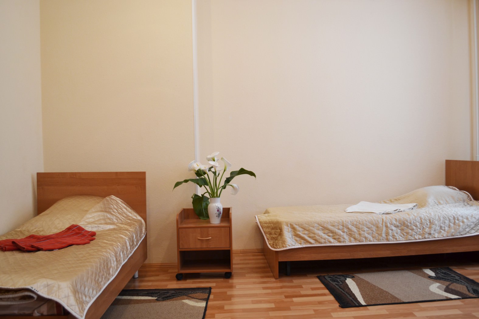 Площадь номера - 30 кв.м. 3 осн. места. 2 доп. места. Мебель: вешалка, кровати односпальные, прикроватные тумбочки, стулья, шкаф. Оборудование: телевизор, телефон, холодильник. Санузел. Сервис: смена полотенец, смена постельного белья, уборка номера.